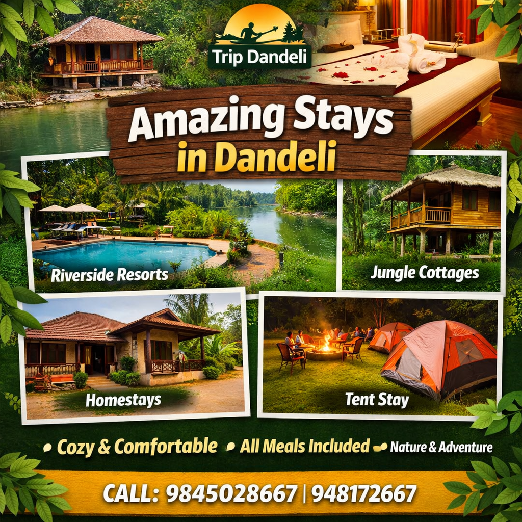 Looking for the best stay in Dandeli that combines comfort, nature, and adventure? Welcome to Trip Dandeli, your trusted local travel partner based in the heart of Dandeli at CMC Complex Sunday Market. We specialize in providing carefully selected resorts, homestays, jungle cottages, and riverside accommodations designed to give you a complete and memorable holiday experience.